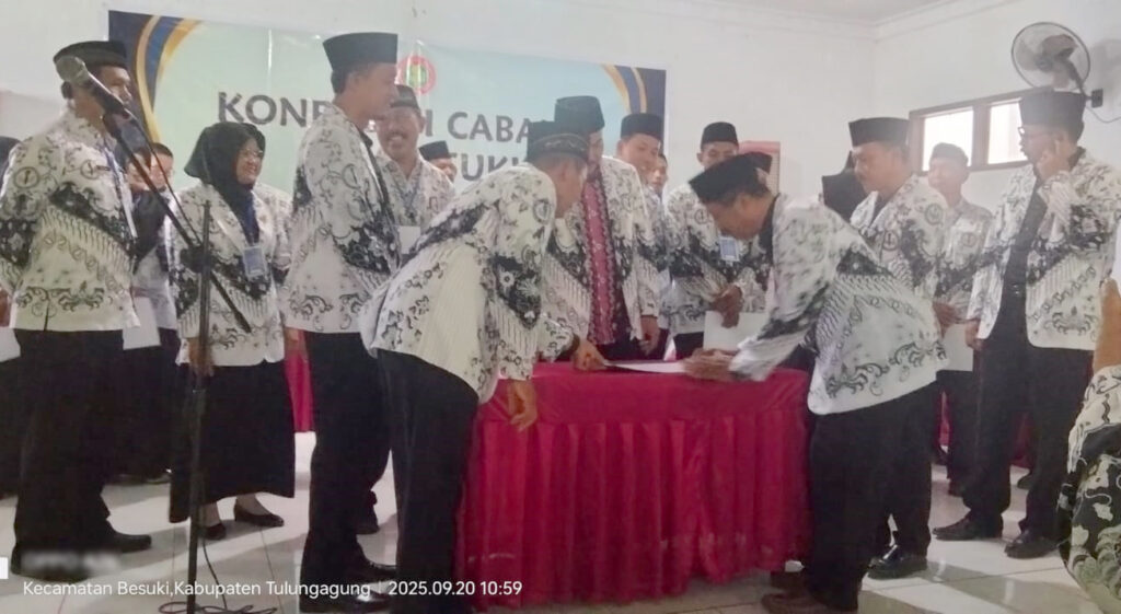 TULUNGAGUNG, pgritulungagung.or.id — Pengurus Cabang Persatuan Guru Republik Indonesia (PGRI) Kecamatan Besuki menggelar Konferensi Cabang (Koncab) Tahun 2025 di Aula KPRI-BG Besuki, Sabtu (20/9/2025). Forum tertinggi organisasi di tingkat cabang ini menjadi ajang evaluasi program kerja sekaligus pemilihan pengurus baru untuk masa bakti 2025–2030.