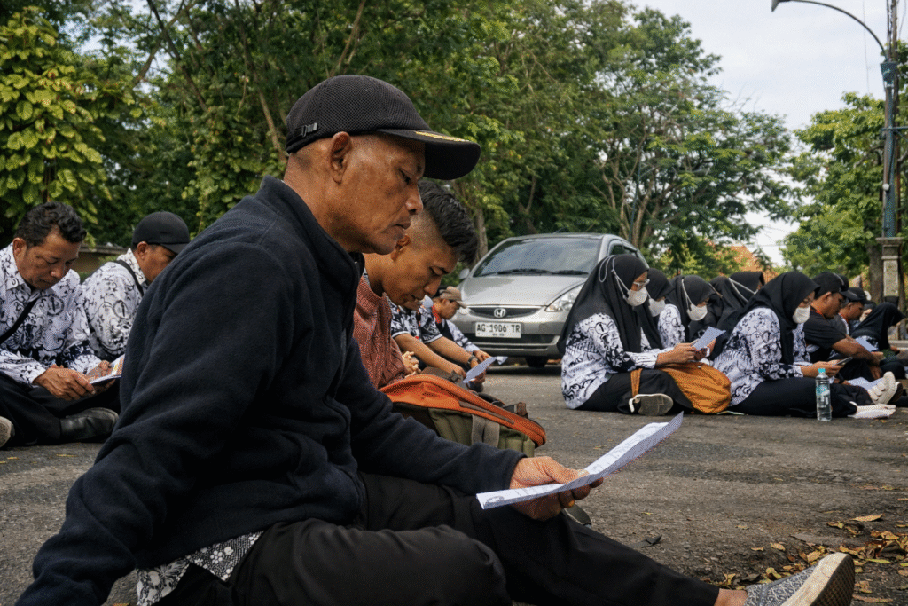 Sebagian bahkan tak lagi menerima tambahan penghasilan pegawai karena tak memenuhi syarat minimal 24 jam mengajar per minggu. Angka-angka itu terasa getir. Guru PPPK paruh waktu jenjang SD menerima sekitar Rp350 ribu per bulan, sementara jenjang SMP sekitar Rp400 ribu tanpa tunjangan tambahan. Jumlah yang mungkin cukup untuk membayar listrik dan membeli beras beberapa hari, tetapi jauh dari cukup untuk membiayai kehidupan keluarga sebulan penuh.